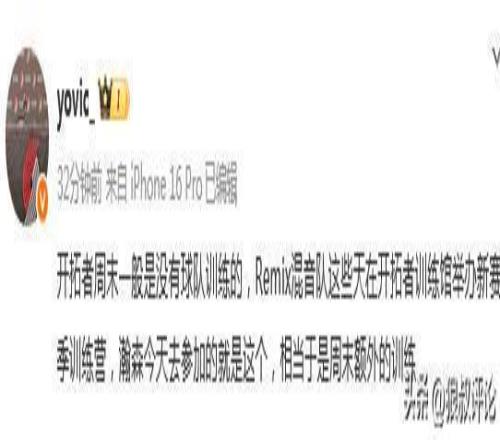不久前,开拓者中文记者“yovic”发文:开拓者周末一般是没有球队训练的,Remix混音队这些天在开拓者训练馆举办新赛季训练营,瀚森今天去参加的就是这个,相当于是周末额外的训练。