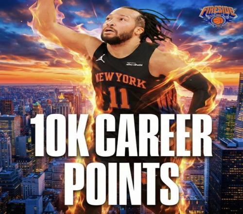 比赛第三节,布伦森罚球命中,得到本场个人第20分,也让他的生涯总得分达到10000分里程碑。